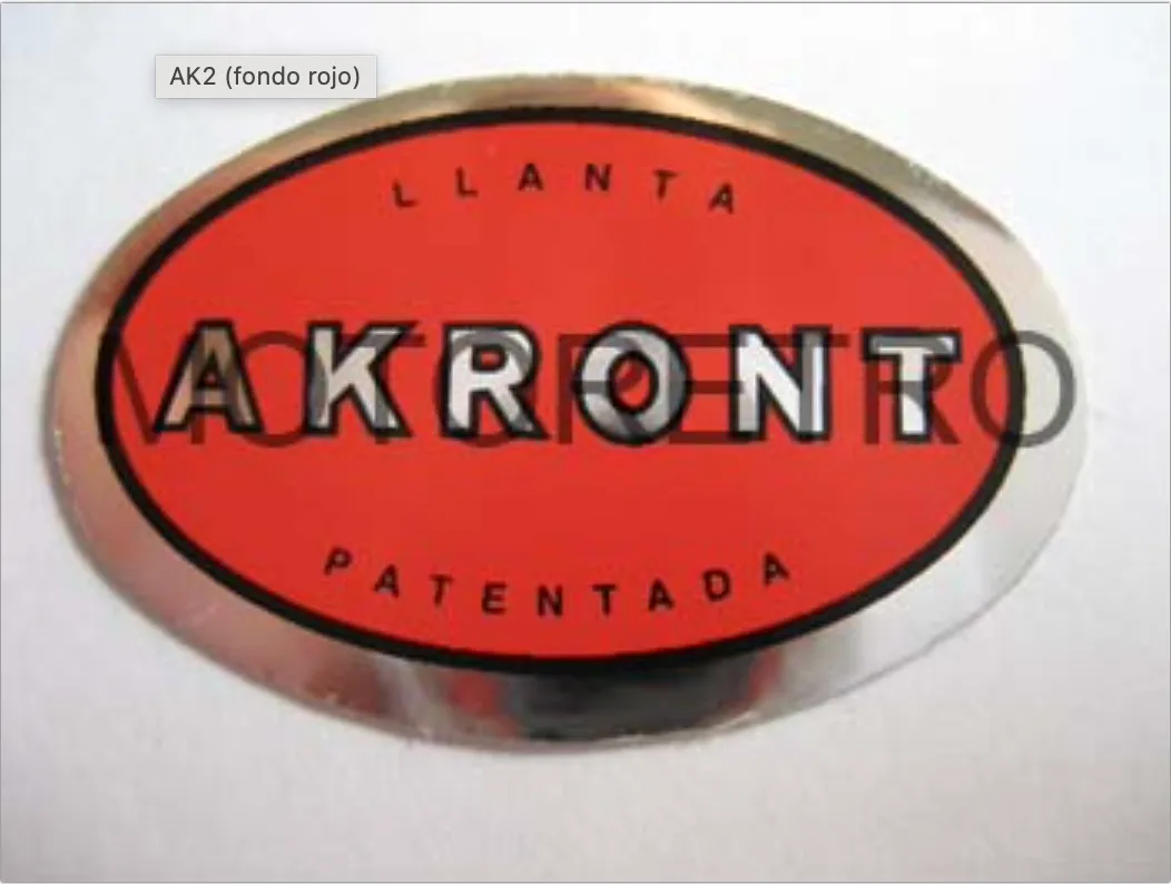 Anagrama AKRONT para llantas de aleación ligera. Está realizado en poliester (rojo sobre fondo plata) y el precio aquí indicado es por la unidad.
