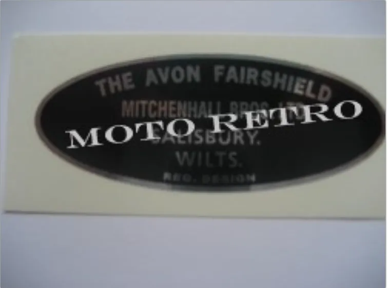 Anagrama AVON para ambos lados colín de la Bultaco Metisse. Está realizado en vinilo plata/negro, óvalo de 66 x 26 mm y el precio aquí indicado es por la unidad.