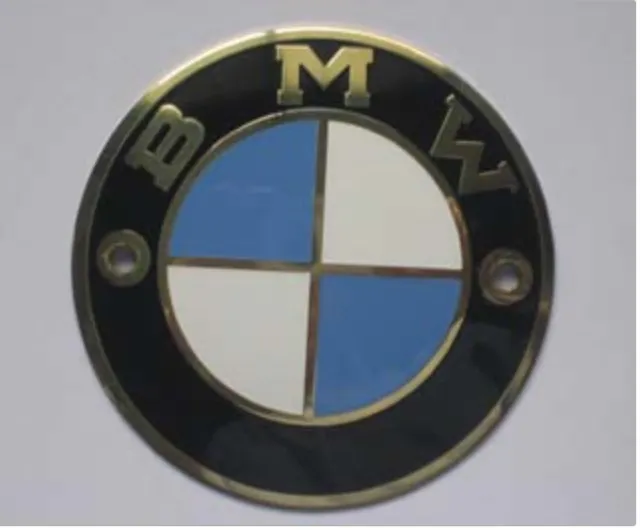 Placa metálica para depósitos modelos años ’50 y ’60. Bombeada y con aro exterior oro, mide 60 mm de diámetro e incorpora la gomita para no dañar la pintura. El precio aquí indicado es por una placa metálica más un aro de goma.