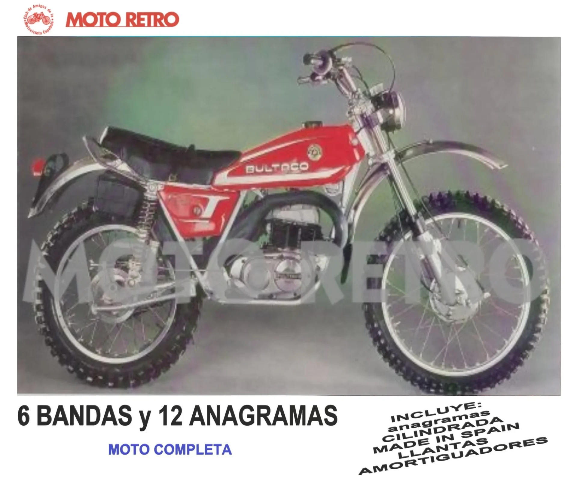 BULTACO ALPINA 187 250cc Moto roja (6 bandas y 12 anagramas) Juego completo