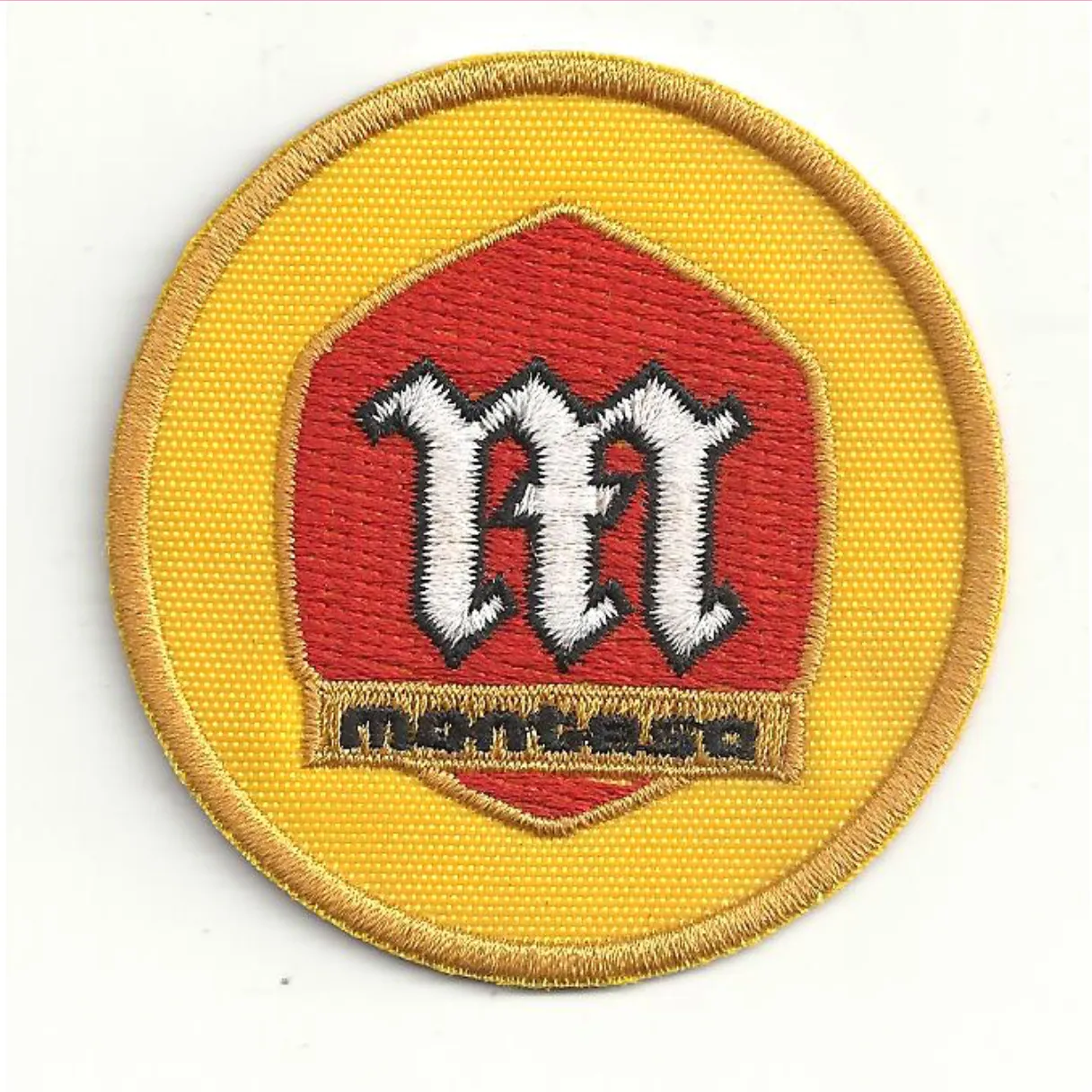 Bordado MONTESA en ropa y colores rojo/amarillo/blanco/negro. Está realizado en excelente calidad y un diámetro de 68 mm. Se aplica por transferencia térmica (no cosido). El precio es de 5,00 euros por la unidad.